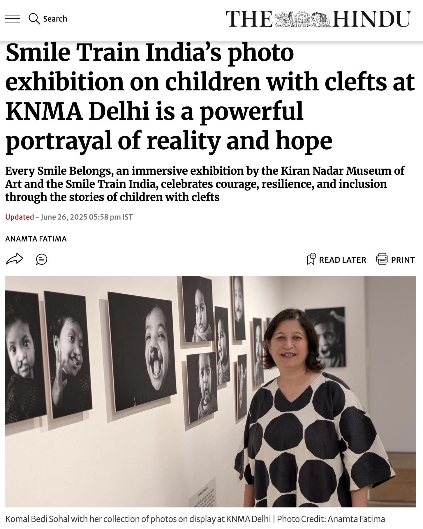 Every Smile Belongs is one of the most meaningful bodies of work I’ve created. Commissioned by Smile Train India and exhibited at the Kiran Nadar Museum of Art, it marks their 25-year journey supporting children born with clefts—a journey that has transformed countless lives.